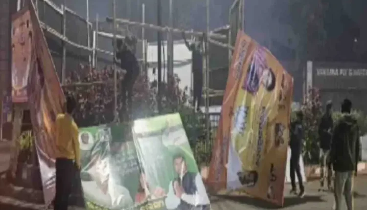ଭୁବନେଶ୍ୱର: ଗୁରୁବାର ବିଳମ୍ବିତ ରାତିରେ ଓଡ଼ିଶାର ରାଜଧାନୀ କଟକ ରୋଡ୍-ସତ୍ୟନଗର ଓଭରବ୍ରିଜ୍ ଜଙ୍କସନ୍ରେ ନୂତନ ବର୍ଷର ଶୁଭେଚ୍ଛା ଲେଖାଥିବା ଅନେକ ରାଜନୈତିକ ହୋର୍ଡିଂକୁ ଭୁବନେଶ୍ୱର ମ୍ୟୁନିସିପାଲ୍ କର୍ପୋରେସନ୍ (BMC) ହଟାଇ ଦେଇଛି। ଏହି ହୋର୍ଡିଂଗୁଡ଼ିକ ଭାରତର ଜାତୀୟ ପ୍ରତୀକ ଅଶୋକ ସ୍ତମ୍ଭକୁ ଲୁଚାଇ ଦେଉଥିବା ଅଭିଯୋଗ ହୋଇଥିଲା। ସେବାରତ ଏବଂ ଅବସରପ୍ରାପ୍ତ ପ୍ରତିରକ୍ଷା କର୍ମଚାରୀଙ୍କ ବିରୋଧ ପରେ ଭୁବନେଶ୍ୱର ମ୍ୟୁନିସିପାଲ୍ କର୍ପୋରେସନ୍ (BMC) ପକ୍ଷରୁ ଏହି ବ୍ୟାନରକୁ ହଟାଇ ଦିଆଯାଇଛି।