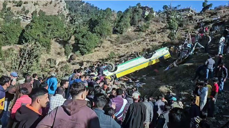 ହିମାଚଳ ପ୍ରଦେଶ: ହିମାଚଳ ପ୍ରଦେଶରେ ବଡ଼ ଦୁର୍ଘଟଣା । ବସ୍ ଦୁର୍ଘଟଣା ଘଟି ୧୩ଜଣଙ୍କ ମୃତ୍ୟୁ । ହିମାଚଳ ପ୍ରଦେଶରେ ବଡ଼ ଦୁର୍ଘଟଣା । ସିରମୋର ଜିଲ୍ଲା ହରିପୁରଧାରରେ ଖାଇକୁ ଖସିଲା ବସ୍ । ସିମଲା ରୁ କୁପଭି ୟିବ ସମୟରେ ୫୦୦ଫୁଟ ଖାଇକୁ ଖସିଛି ବସ୍ । ଦୁର୍ଘଟଣାରେ ୩୩ଜଣ ଯାତ୍ରୀ ଗୁରୁତର ହୋଇ ଚିକିତ୍ସାଳୟରେ ଭର୍ତ୍ତି ହୋଇଛନ୍ତି । ମୃତକଙ୍କ ପରିବାରକୁ ୨ଲକ୍ଷର ଅନୁକମ୍ପା ଘୋଷଣା କରିଛନ୍ତି ପ୍ରଧାନ ମନ୍ତ୍ରୀ ମୋଦୀ ।
